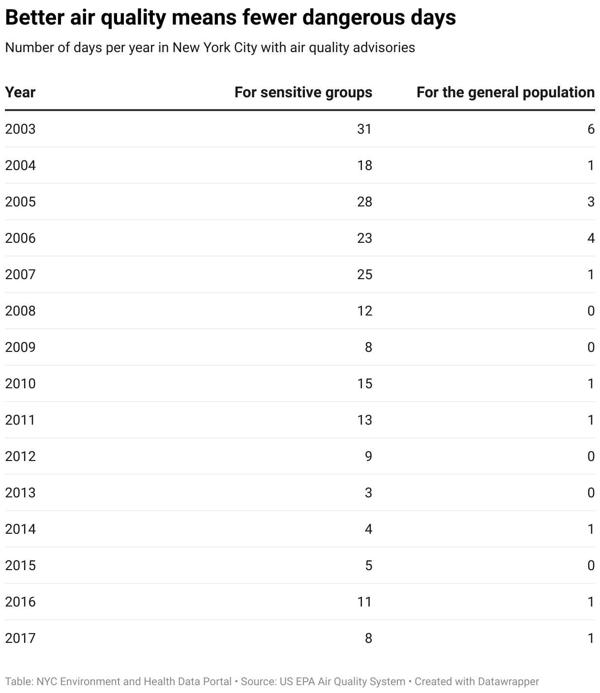 Over the years, though, the number of advisory days has gone down. That’s good news for everyone who breathes.
